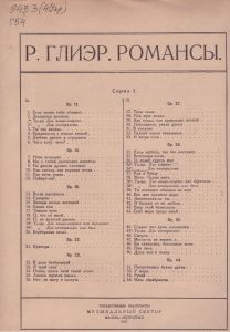О, если б грусть моя [Ноти] = O, dass du ahnen könnt’st : для контральто : ор. 28 № 3 / Р. Глієр ; слова Россвейна. — Москва ; Петроград : Музыкальный сектор, 1923. — 5 с. — (Р. Глиэр. Романсы ; Серия І). — Текст паралельно російською та німецькою мовами. — Номер дошки: 37596.