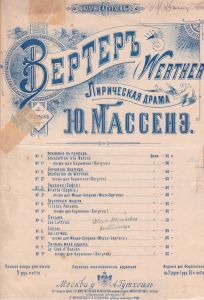 Песенка Софи [Ноти] = Ariette Sophie : лирическая драма “Вертер” / Ю. Массенэ. — Издание для фортепиано в 2 руки. — Москва : А. Гутхейль, 1903. — 5 с. — Видання паралельно російською та французькою мовами. — Номер дошки: A. 8452 G.