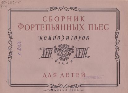 Сборник фортепьянных пьес композиторов XVII-XVIII вв. [Ноти] : для детей. — Москва : Государственное музыкальное издательство, 1961. — 23 с. — Номер дошки: 18471.
