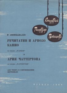 Речитатив и ариозо Канио : из оперы “Паяцы” ; Ария Чаттертона : из оперы “Чаттертон” [Ноти] : для тенора в сопровождении фортепиано / Р. Леонкавалло. — Москва : Музыка, 1964. — 7 с. — (Концертный репертуар вокалиста). — Текст паралельно російською та італійською мовами. — Номер дошки: 291/31189.