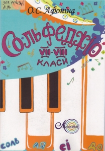 Сольфеджіо 7-8 класи [Ноти] : навчальний посібник : для сьомого та восьмого класів ДМШ та шкіл мистецтв / О. С. Афоніна ; Міністерство культури і туризму України. Державний методичний центр навчальних закладів культури і туризму. — Видання друге, виправлене. — Київ : Мелосвіт, 2012. — 88 с. — Номер дошки: МС 0187.