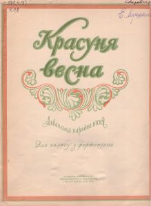 Красуня весна [Ноти] : албанська народна пісня : для голосіу з фортепіано / музична обробка Л. Бірнова ; український текст О. Ющенка. — Київ : Державне видавництво образотворчого мистецтва і музичної літератури УРСР, [1965]. — 6 с.