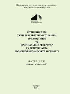 Музичний твір у світлі культурно-історичної еволюції епох та оригінальний репертуар як детермінанта музично-виконавської творчості : матеріали наукових конференцій / відповідальний за випуск В.В. Громченко ; Національна всеукраїнська музична спілка ; Дніпровська академія музики. – Дніпро, 2025. – 126 с.