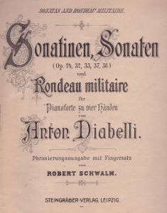 Sonatinen, Sonaten (Op. 24, 32, 33, 37, 38) und Rondeau militaire [Ноти] : für Pianoforte zu vier Händen / Anton Diabelli ; Phrasierungsausgabe mit Fingersatz von Robert Schwalm. — Leipzig : Steingraber, [19–]. — 99 c. — Номер дошки: 315.