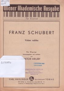 Valses nobles [Ноти] : op. 77 : [№№ 1-12] / Franz Schubert ; fur Klavier herausgegeben und revidiert von Viktor Hruby. — Wien : Carl Haslinger quondam Tobias, [18–]. — 7 c. — (Wiener Akademische Ausgabe : für Klavier). — Номер дошки: H. 404.
